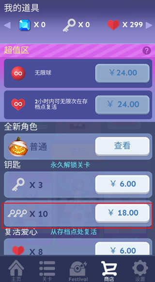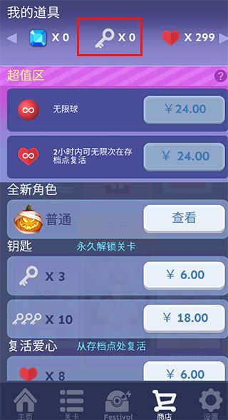 2、可以看到现在钥匙是0的,点击购买18元的钥匙;