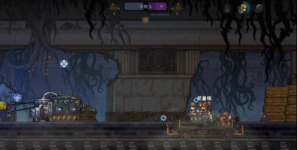 由于资源变少,电机左边的第一堆蘑菇和齿轮都要收集,然后还需要手动收集右边第一堆蘑菇。天亮前必须回到第一个废墟等天亮,不然会刷卵。