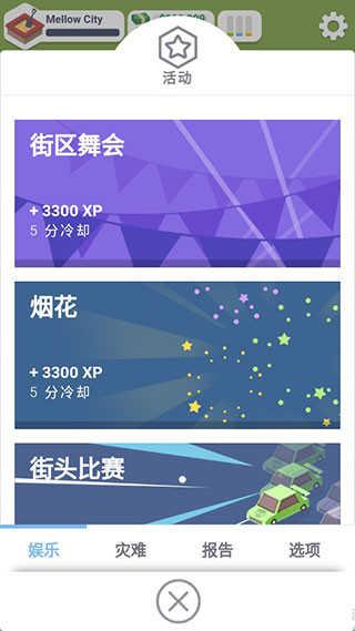 1、进入游戏后,进入主界面,可看到游戏共分为三个玩法板块,点击开始新的城市开始游戏;
