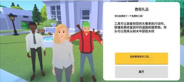 7、在这个过程中你会得到免费的工具,其中铁锤可免费修复损坏的道路和建筑物,还有斧头可以用来从树木中获取木材。