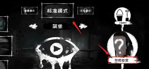 1、首先运行恐怖之眼自定义鬼脸版本,进入游戏页面,点开设置,选择模式,点击-你的自定;