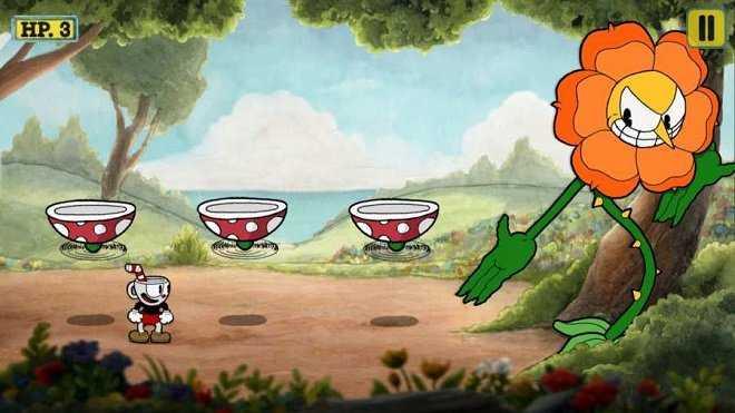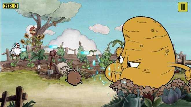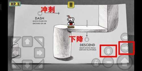 茶杯头的实战技巧是按↓可以蹲伏在地上闪避攻击;