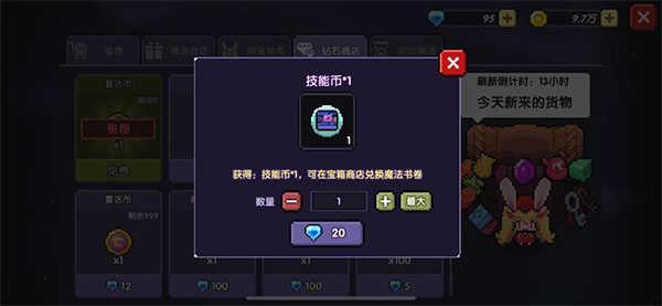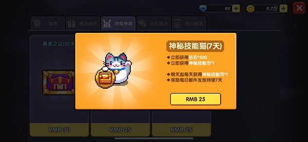 三倍速这里建议的是,能在商店用金币买就不要买神秘技能币抽,因为这样的花费是巨大的。在商店的限时精选刷到想要的技能可能性还是很大的。如果你非要用神秘技能币获取技能话,我还是建议你去商场的阿兔特卖,购买七天的神秘技能猫,一共可以获得8枚神秘技能币,还是很划算的。