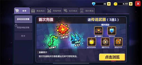 在我的勇者里快速获得神器的方法就是首冲6元,然后就可以从水龙头、炎魔心脏、花妖触手三把神器里任选其一,有很多才入坑的小伙伴不知道三选一该选谁好,下面就给大家分享一下。
