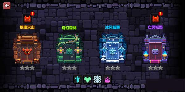 秘境副本是装备的主要产出途径,每一层的秘境又分为地底火山、奇幻森林、冰风城寨和亡灵城堡四张分地图,对应的怪物属性是火、水、木以及杂(即三种属性的怪物都有),玩家使用相针对的武器就能起到事半功倍的作用哦!秘境副本会随着玩家冒险等级的提高而解锁新的秘境层数。