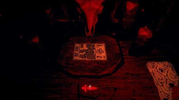 8、在8~9周目时,门右侧摆放猎人棋子的桌子下方的长方形盒子里会出现一张神秘卡牌(只露出右上角),拾捡时突然视觉受到干扰,卡牌就消失了,以至于本人没来得及截图。似乎卡面上画着一个独眼黑色人,右上角有个罗马数字三,应该不是常规的造物牌。不确定触发条件,可能与油画和挂钟有关。