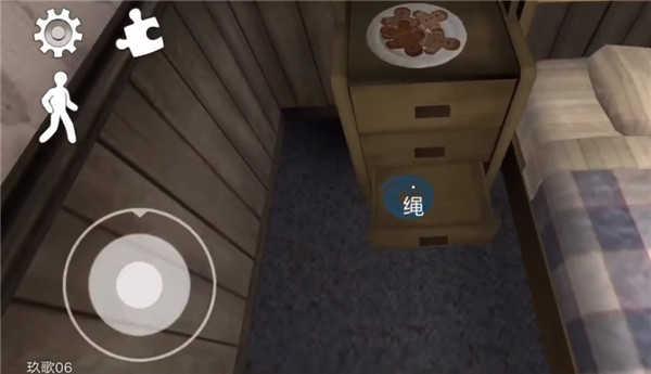 1、游戏开始,点柜子上的酒,掉到地上。人出去后在到酒的碎片那里去,绳子断了。再点上面的天窗,然后