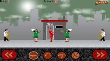 2、进入游戏后,两边会有人过来想要上厕所,你必须阻止他们在厕所里胡闹。