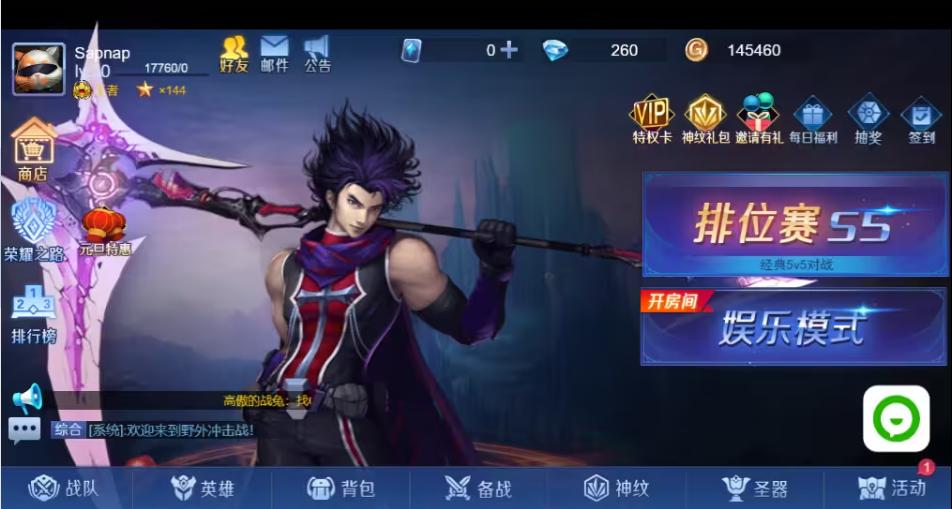 打开进入野外冲击战手游,输入账号密码登录进入主界面。