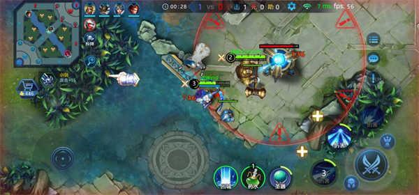 3、进入游戏后左边是控制人物移方向,右边则是英雄的技能;