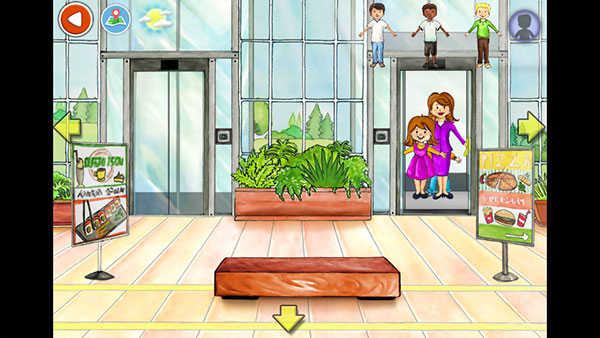 1.首先打开娃娃屋plus中文版最新版游戏,来到电梯口,跟我们现实中一样,点击按钮可以开门;