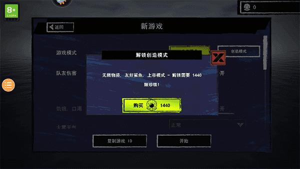 6、而创建模式就非常的自由度了,不仅提供了无限物资和友好鲨鱼之外,还可以邀请好友一起组队。