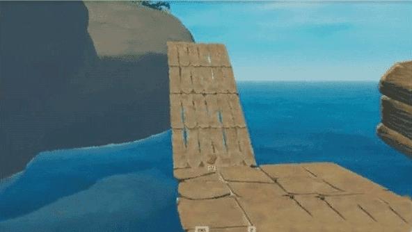 4、斜坡向上搭建至能看到岛上陆地,跳上去就登岛啦。