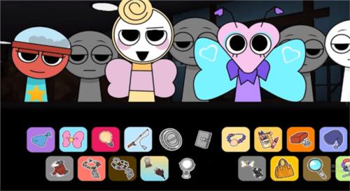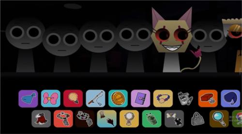 1.节奏盒子sprunki操作简洁明了,玩家只需拖动装饰品为角色进行装扮,角色便会发出相应的音乐节奏。