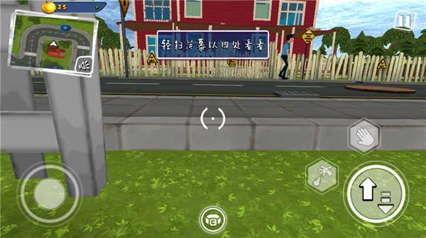 2、我们进入游戏当中,开局的第一局都是会被邻居抓住的,游戏里面也有好多小道具都可以用来对付邻居,滑动屏幕可以观看四周;
