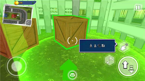 3、左下角轮盘控制人物的移动方向,右下角则为跳跃和工具;