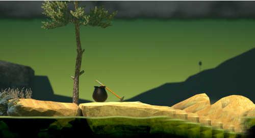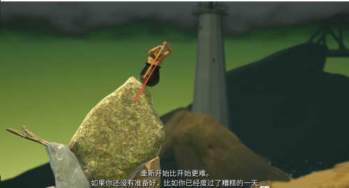 1、首先了解游戏形式,一个力大无比的男人,下半身被困在一个罐子里面,只能靠拿着一个锤子或推或钩周围的物体推动自己。罐子里面有水,运动的时候水会导致晃动,增加了游戏的难度。