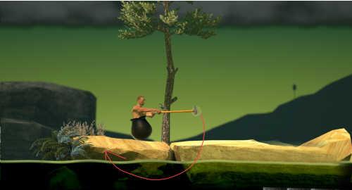 第一点:“画圆”裸男的锤子和和身体可以看成一个圆,玩家在操作的时候相当于不断的用鼠标去画圆儿大部分的地方需要玩家比较完整的画出一个差不多的圆才能跳过障碍。这刚开始觉得很容易,但是随着时间增长会变得越来越难。也就是说,做一次不难,难的是一只这么做。
