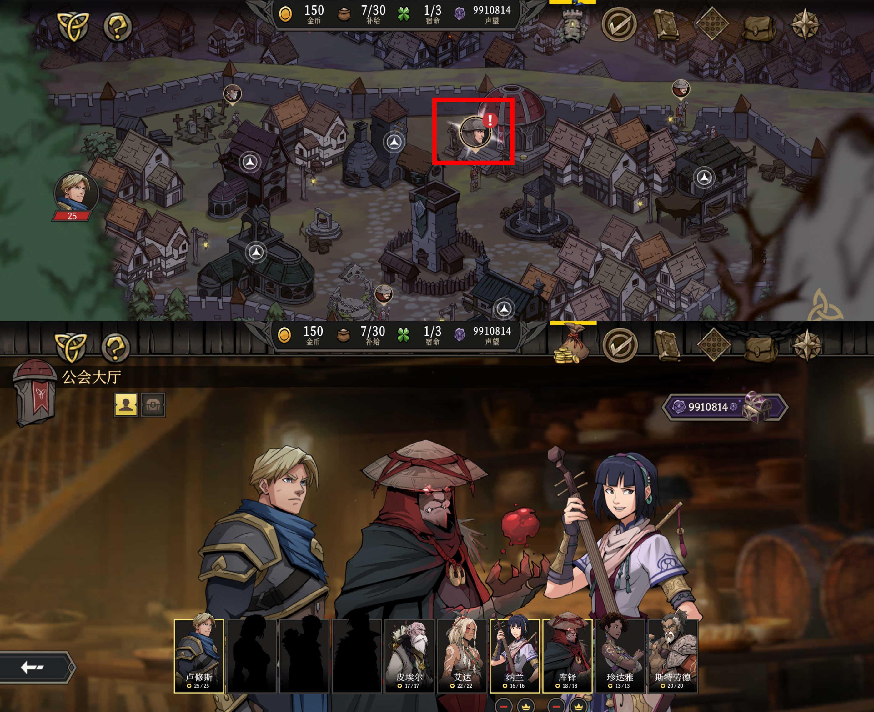 在剧情模式游戏过程中,可前往【公会大厅】找到已解锁/获得的角色。