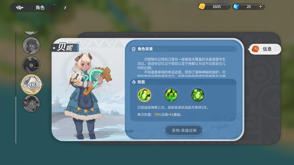 贝妮隐约记得自己曾在一座被极光覆盖的冰晶城堡中生活过,但这份记忆过于朦胧以至于她都认为这不过是自己儿时的幻想。