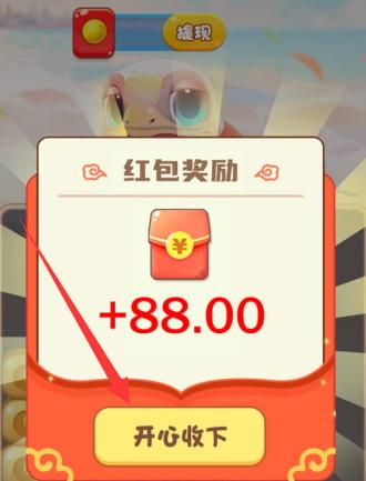 在这里完成消除就能获取红包而且直接点击“开心收下”即可