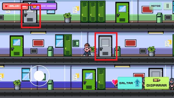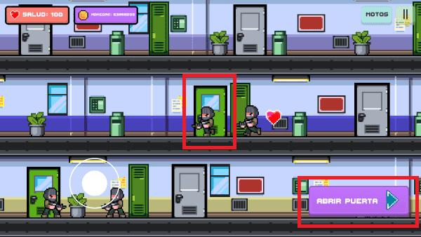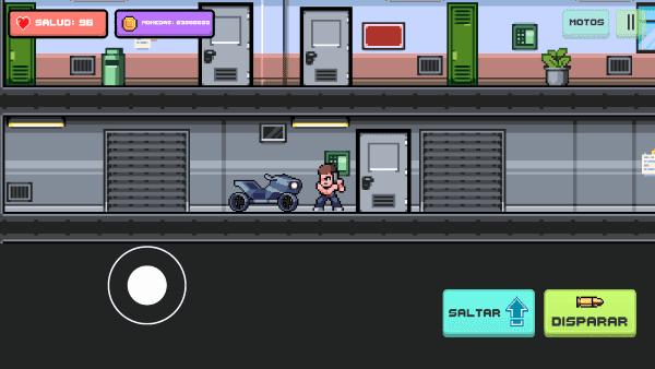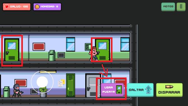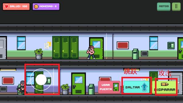 1.熟悉操作:通过摇杆控制角色移动,当移动到绿色门时可以点击闪动的图标进入下一层。面对敌人时使用射击键进行射击,成功到达最底层即可获得摩托车继续冒险。