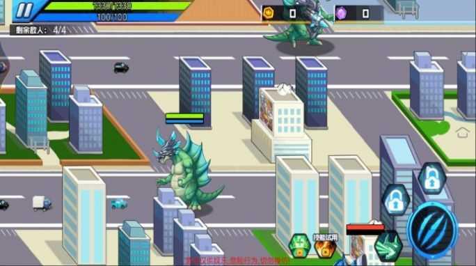 3、需要注意到整个都市的情况,通过滑动屏幕便可查看具体的位置,就会发现机器人的存在,及时朝着他们走去, 便可开始对决。