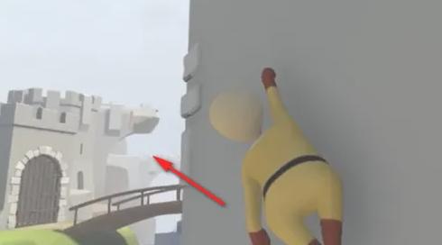 般没有任何支撑物的墙都只比小人高一 个头的距离, 玩家需要紧贴着墙边,在跳的同时,将手高举抓住墙的边缘,一 用力网上跳就可以跳上去翻过墙了。