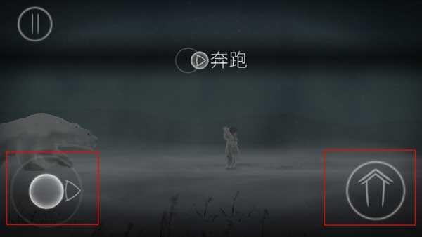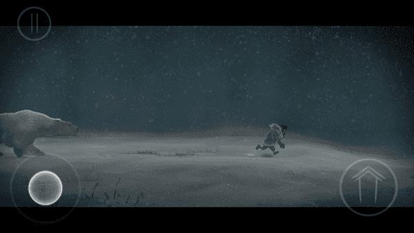 5、故事开始于小姑娘在一个风雪交加的晚上醒来,后面有北极熊追赶,玩家需要点击左边的奔跑按钮开始逃离北极熊的掌下。