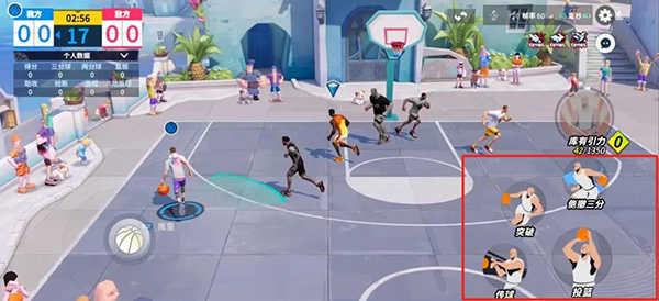 5、分卫实操展示分卫突破上篮推动方向键配合突破技能晃过对手拉开空位,靠近篮筐上篮得分。