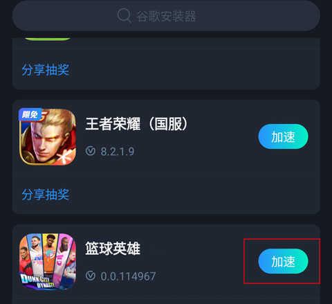 1、首先你需要一个加速器,在加速器里选择全明星街球派对海外版,点击“启动”。