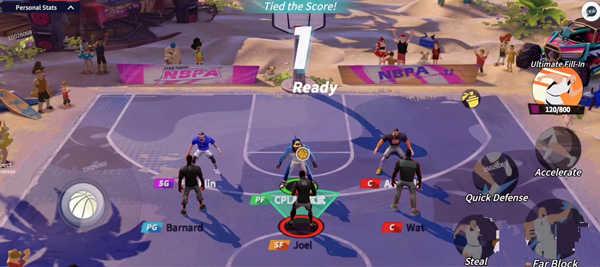 《全明星街球派对》的场地仅占用标准篮球场的一半,攻防转换时,场地上的三分线会闪烁提示,如果不出三分线,则无法进行进攻。