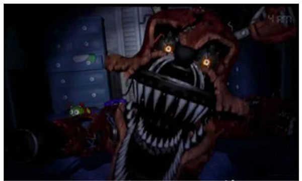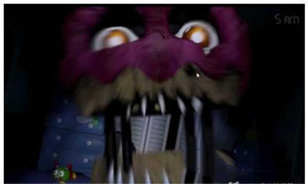 应对方法:如果我们发现弗莱迪出现在办公室正门,我们可以在这个时候戴上面具,他可能呆一会会走;如果不戴面具的话,他会靠近办公桌,这个时候必须赶紧在屏幕灯光闪烁结束之前戴上面具,否则就会被他拖走。