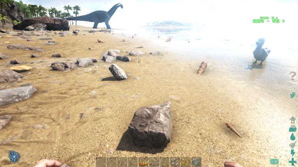 新手可以选择食肉恐龙少的南方沿海作为出生点,推荐两个安营扎寨的好地方: