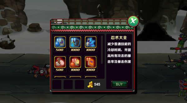 【金币】开局50金币,消灭敌方忍者、小兵和塔来获取,对局结束后所获金币可解锁奥义