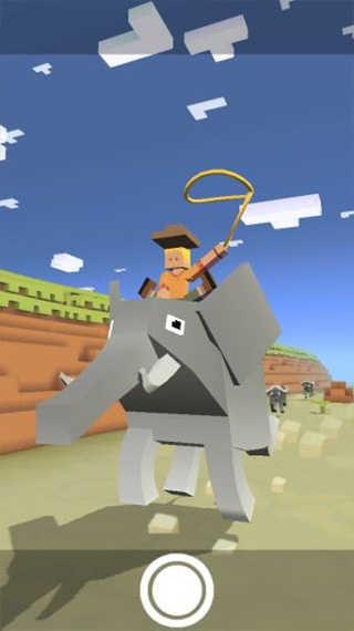 1、开玩画面中,人物会骑驾着小野牛,带着套索在地面上奔跑,按着画面不松开,在距前方的动物较近时,向前一滑,瞬间跳入。