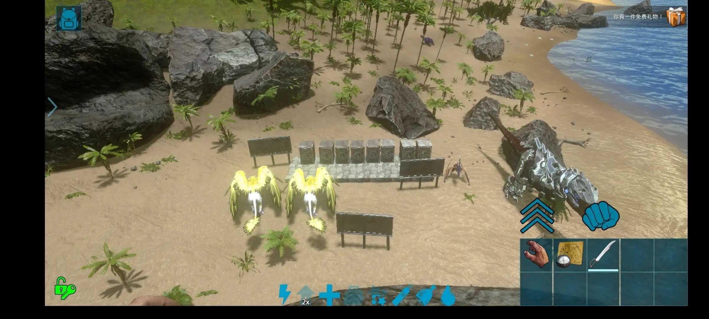 宠物可以升级并需要消耗食物,飞行生物可以让玩家飞翔,强大的恐龙是攻击敌人的利器