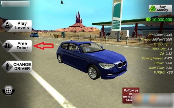 首先第一步,我们点击游戏的“free drive”按钮,翻译过来就是“自由驾驶”的意思。