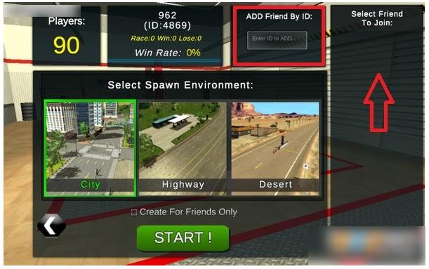 这个时候我们其中一个人先随便找到一个地图点击“SATRT!”按钮开始游戏,好友直接在右边找到我们的ID点击名字进入游戏即可。(手速一定要快,不然大家的房间可能会满人,一般8人就满了)。