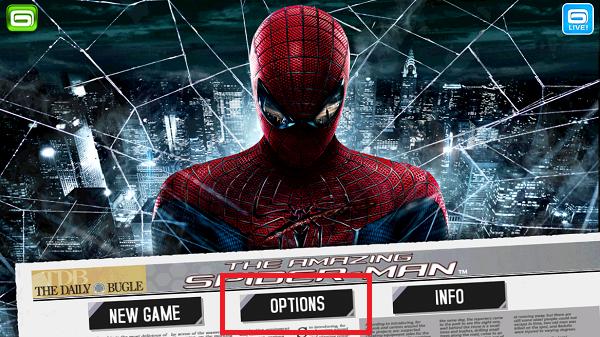 1、打开超凡蜘蛛侠手机版中文版后,点击红框内“options”