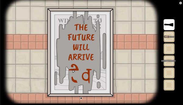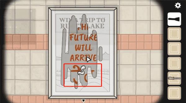 5、地铁繁花中在婴儿车旁边的场景里有一张海报,用铲子把海报刮烂,就看到“THE FUTURE WILL ARRIVE”,也就是未来即将到来的意思。然后海报底部会出现一个神秘符号。