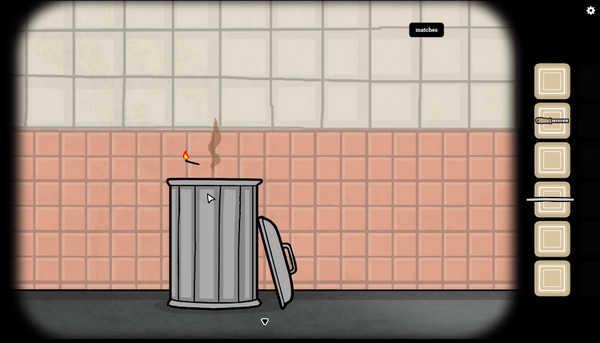 4、我们开局会自带一把火柴,我们用火柴点燃垃圾桶,然后垃圾桶会慢慢烧毁,露出一把小铲子。