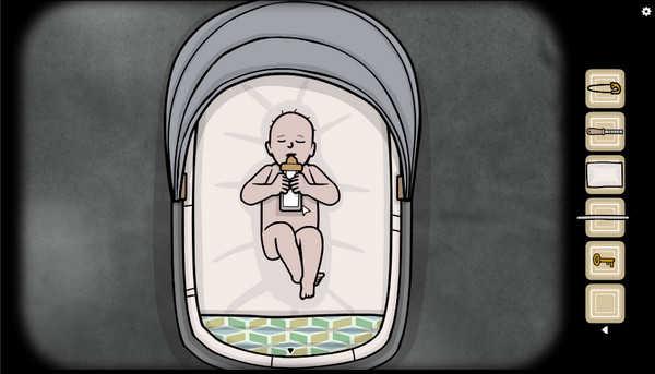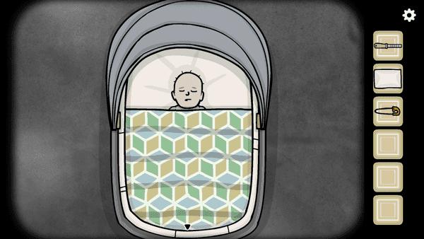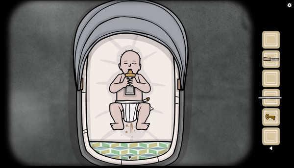 13、喝了奶之后,再把之前拿到的布,还有回形针拖到劳拉身上。穿上后获得脏尿布。