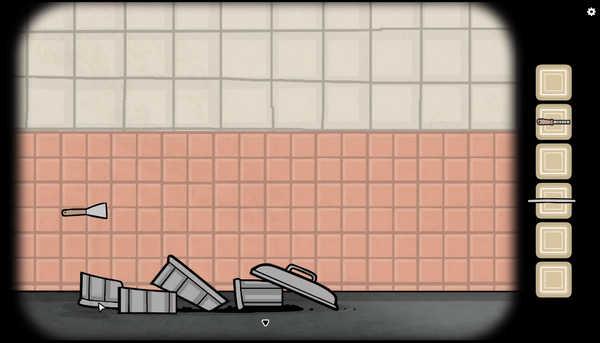 9、我们回到放箱子的地方,去看排水管,用锉刀将断裂的水管取下来,获得断裂的水管和钥匙。