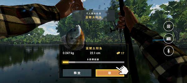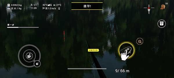 4、右边的按钮是抛竿,寻找到合适位置后点击此键抛竿即可