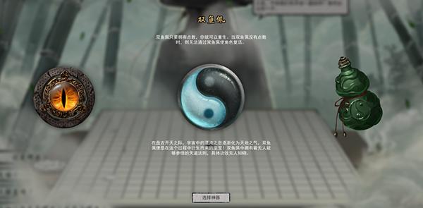 在游戏开局有三个可选的神器,分别为:昊天眼,双鱼佩,炼妖壶。