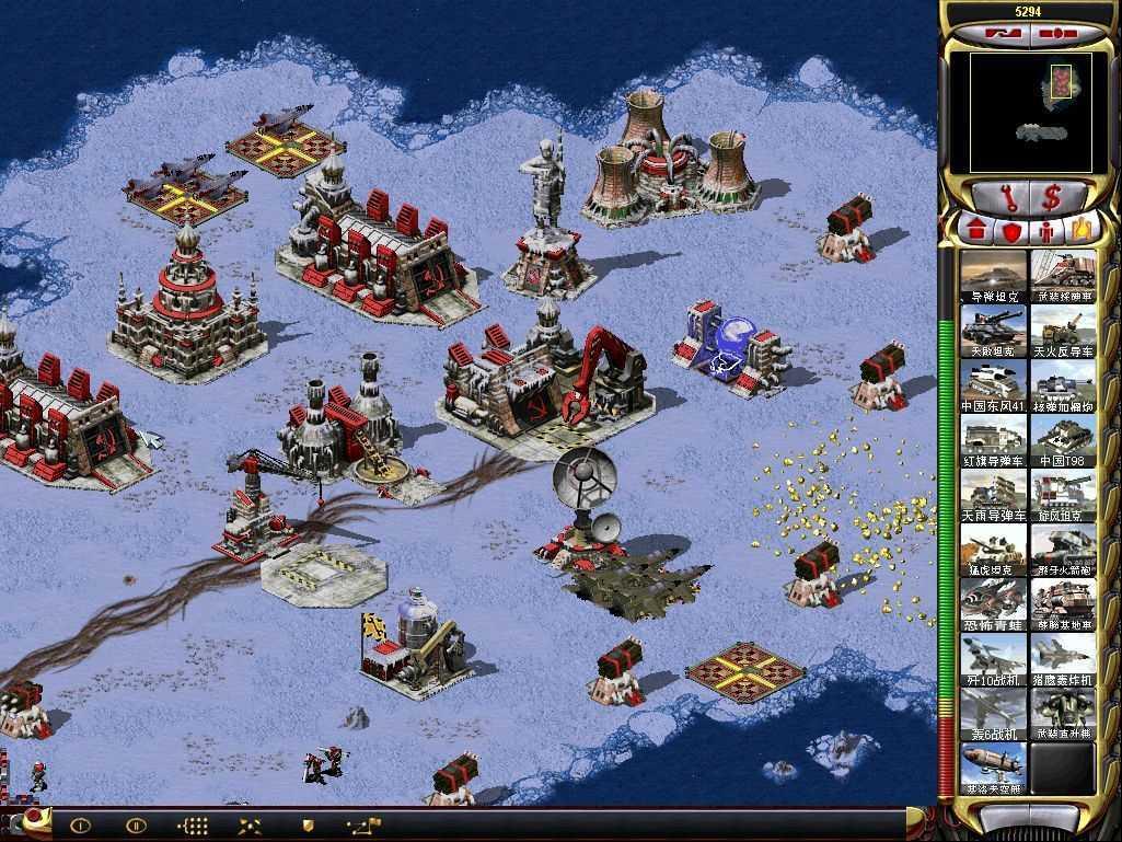 由于我打的大部分单挑都是快打,所以什么高级兵种和海军都不实用,可以说陆军一战定胜负。红警本身有个不同于星际的很大的特点就是建筑可以卖,在单挑的过程中钱就是军队,更多的军队就是胜利,所以雷达不要造,开始用狗探到敌人就行了,基地要在适当的时候卖掉转化为军队,这点是很关键的。还有一点,因为不同于星际的多兵营就能多出兵原理,所以我一般是不会造矿车的——会影响坦克的建造,所以都是做矿厂,然后卖掉,这样可以保证军队和经济的并行不悖。