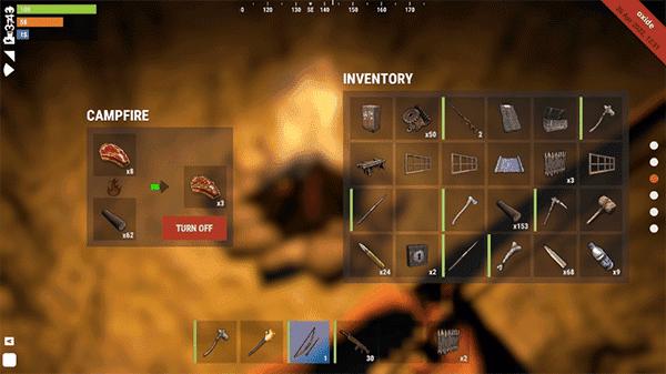 营火堆栏位,底下是燃料木头,上面cook栏位就是放生肉