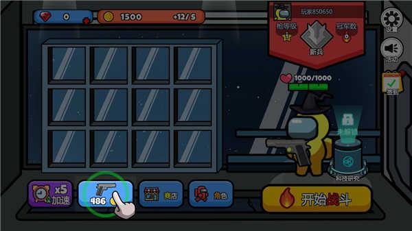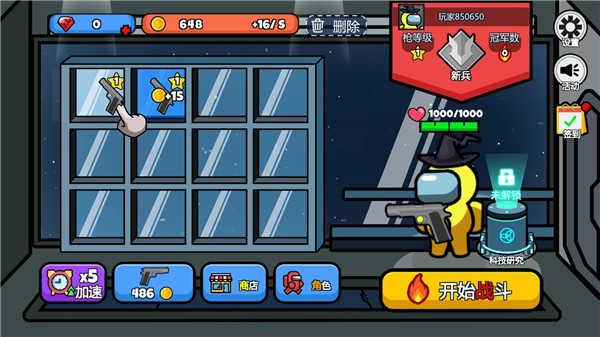 1、下载进入太空大逃杀游戏,通过购买武器来提升你的战斗能力;