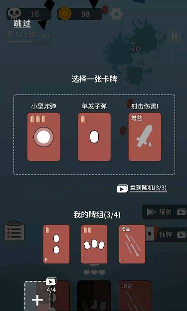 开局选择三发散弹作为基础卡牌,升级后优先选择升级散弹>其他散弹>炸弹(只选一次)>其他